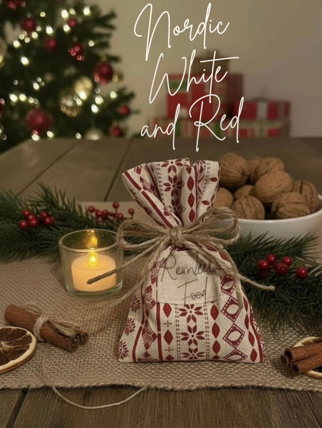 Handmade Christmas Reindeer Food Bags, lovingly sewn from woven fabric or velvet.